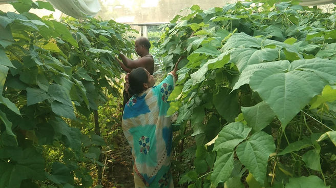 This initiative involves collaboration between Jeevika, Kheyti (Earthshot prize winners 2022 and creators of the ‘Greenhouse-in-a-box’) and local implementation partner Jeevan Rekha Parishad (JRP) to implement Controlled Environment Agriculture (CEA). 12 greenhouses have already been successfully installed and early evaluation indicates significant yield increases for traditional vegetable crops, reduced need for irrigation and reduced threat pests allowing for minimal use of organic pesticides. Farmer training and capacity building is being carried out to encourage farmers to trial higher value crops (e.g. bell peppers) and low-income women farmers are being supported to share greenhouse cultivation through Self Help Groups (SHGs). Many of the farmers using the greenhouses are then following this up with use of the Solar Cold Storage to maximise produce quality and saleability.